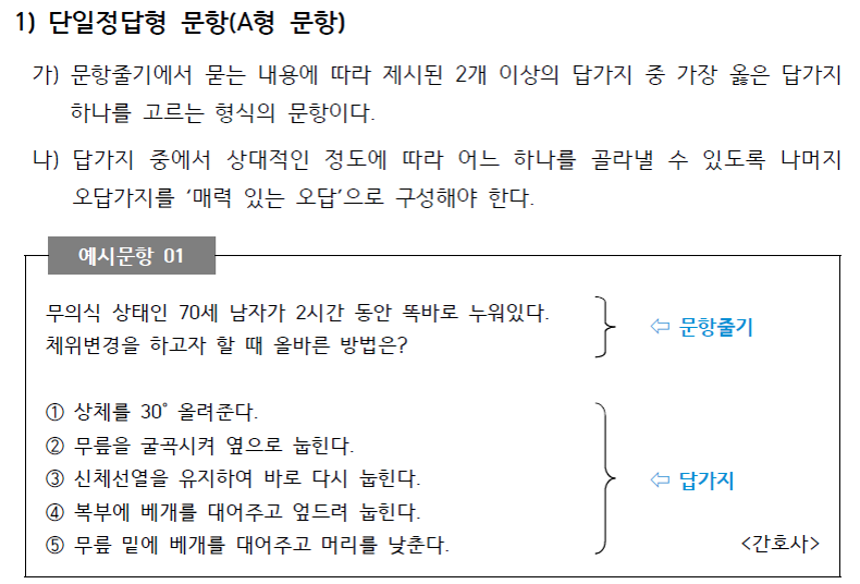 2. 이 무슨 당연한 소리를 '놀랍다'거나 '흥미로운' 이라고 하는거냐 싶겠지만, 과거(짧게는 세달 전, 길게는 십여년 전)에는 A형 말고 의사국가시험에 다른 유형의 문항이 있었다.