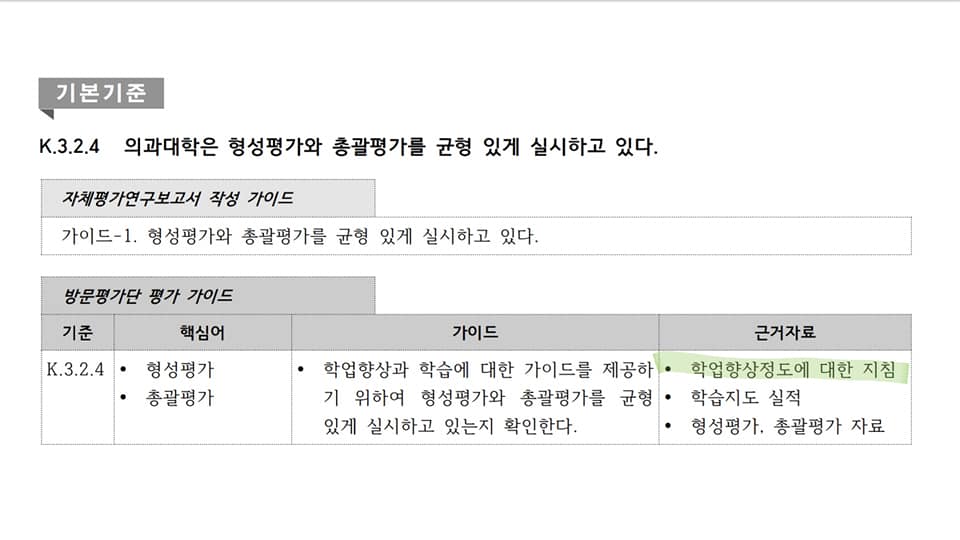 물론 번역이라는 것이 쉽지 않은 일이고, 이 기준이 수많은 회의와 공청회를 거쳐 만들어진 것이지만, 그럼에도 불구하고 95% 정도로 "이것은 오역"이라고 생각하는 기준이 있는데 바로 K.3.2.4의 "학업향상정도에 대한 지침"이라는 표현이다.(그림) (나머지 5%는 빠져나갈 구멍..)