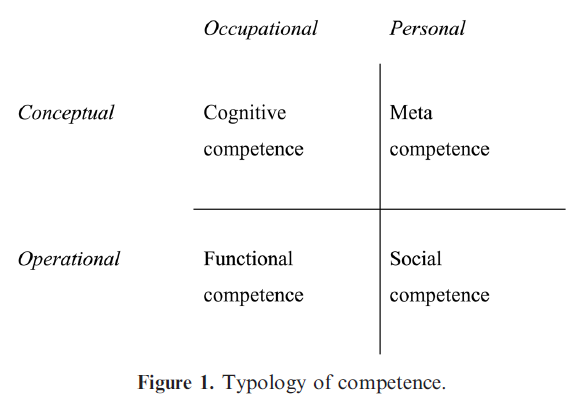 The first three dimensions, cognitive, functional and social competences, are fairly universal and are clearly consistent with the French approach (savoir, savoir faire,savoir eˆtre) as well as the longstanding KSA (knowledge, skills and attitudes) of the training profession. Thus,
