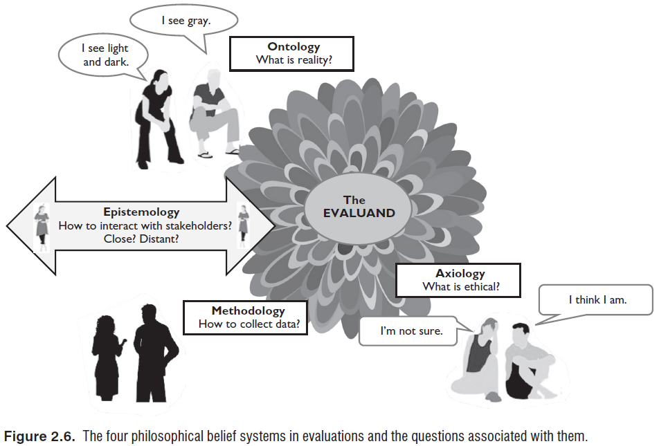 Figure 2.6: 평가에서 네 가지 철학적 믿음 체계와 관련 질문들