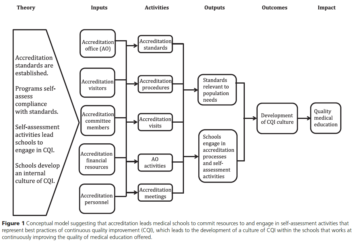 출처: Blouin, D., & Tekian, A. (2018). Accreditation of medical education programs: moving from student outcomes to continuous quality improvement measures. Academic Medicine, 93(3), 377-383. https://journals.lww.com/academicmedicine/abstract/2018/03000/accreditation_of_medical_education_programs_.21.aspx