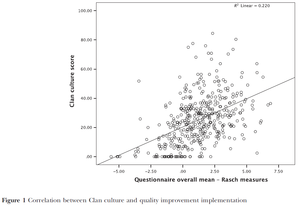 Blouin 등의 이전 연구18의 데이터와 각 프로그램에 대한 설문지의 전체 평균을 사용하여 문화 유형과 인지된 QI 구현 정도 간의 상관관계를 계산했습니다(표 6 및 그림 1-4).