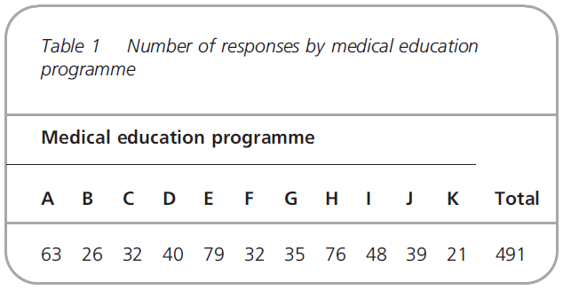 각 UME 프로그램의 응답자 수가 적다는 점은 이 연구의 결과를 제한합니다. 그러나 각 응답자 범주의 대표성(약 33%)은 양호했습니다. 각 학교의 표본 집단에서 얻은 결과를 전체 프로그램에 일반화할 수는 없습니다.
