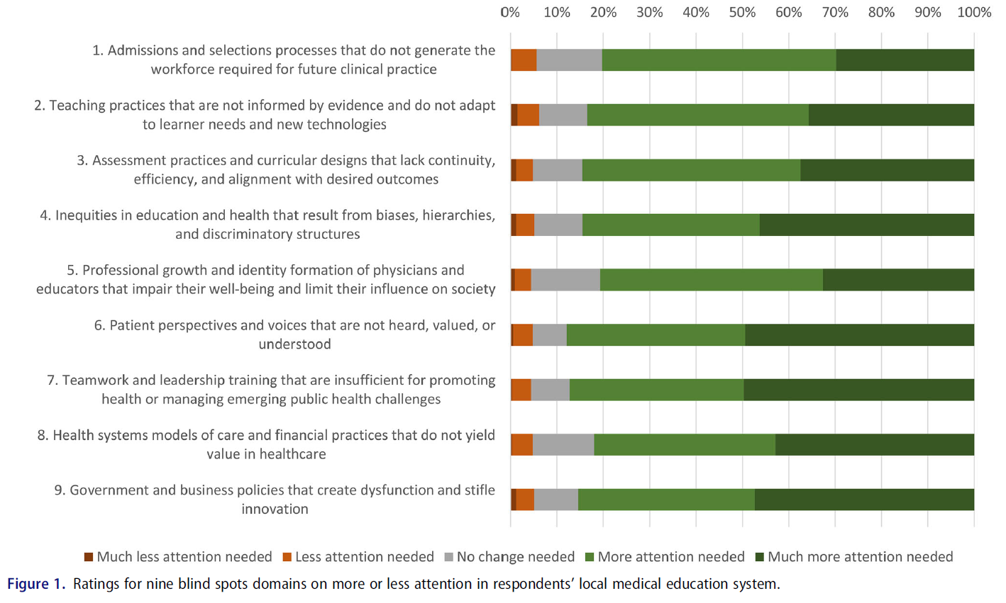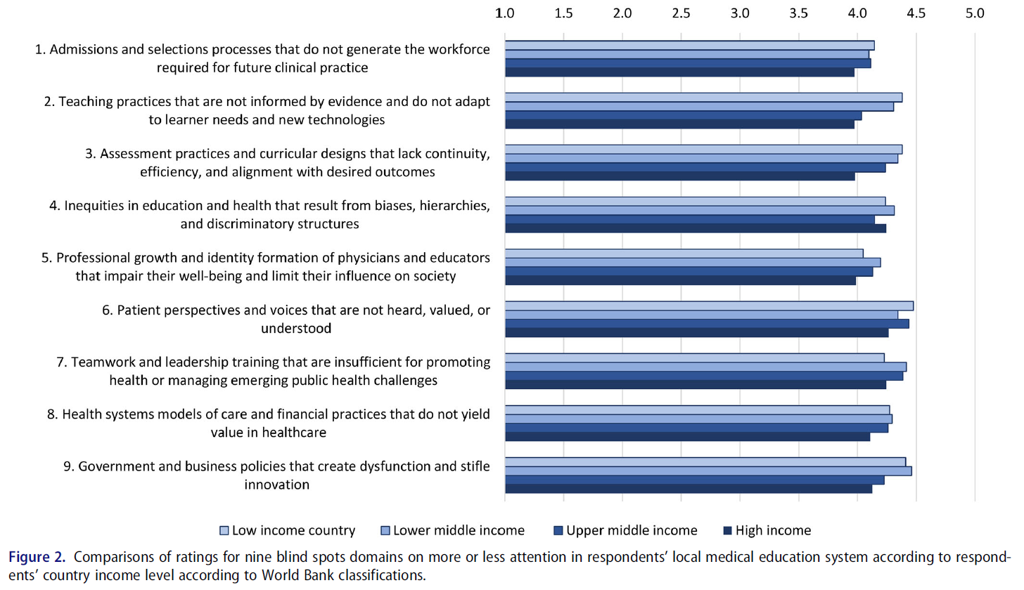 출처: Tackett, S., Steinert, Y., Mirabal, S., Reed, D. A., Whitehead, C. R., & Wright, S. M. (2024). Blind spots in medical education–International perspectives. Medical teacher, 1-7.
