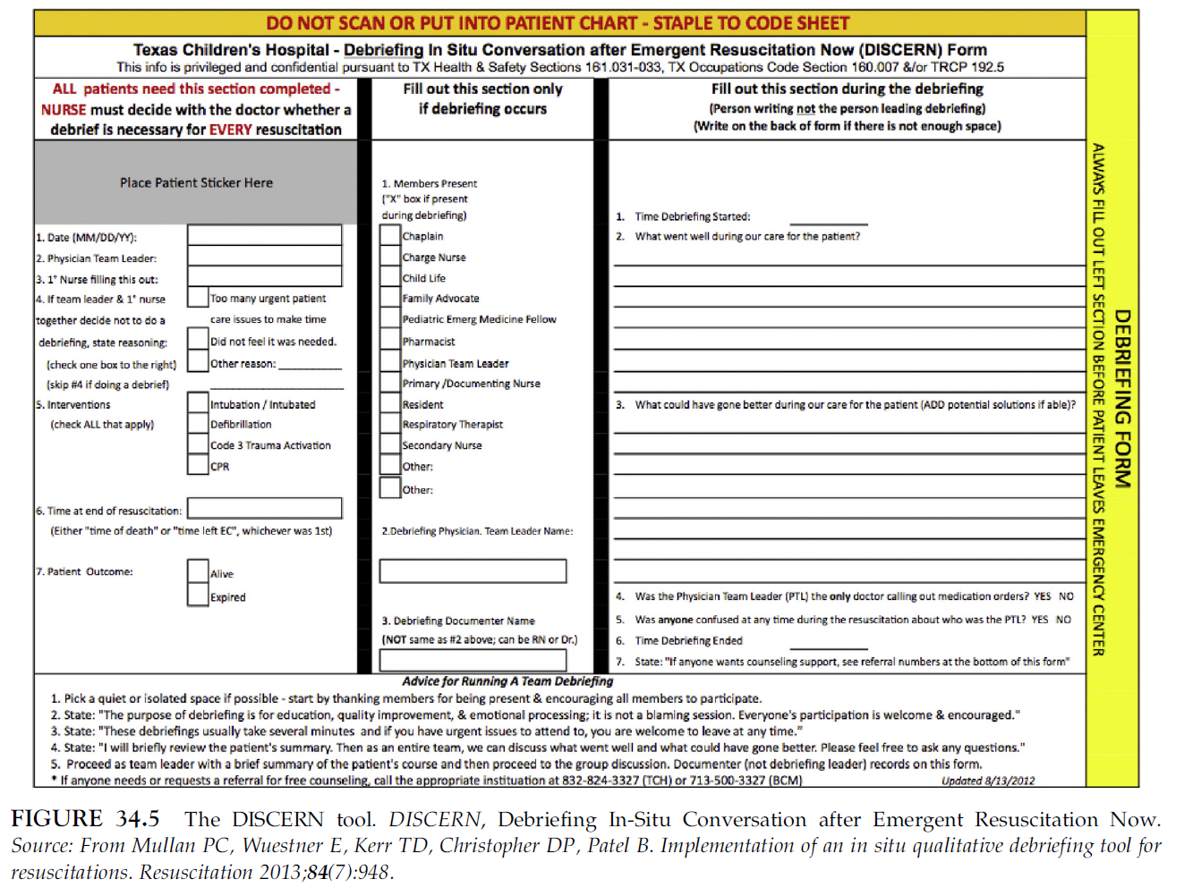 그림 34.5. DISCERN 도구. DISCERN, Emergent Resuscitation 이후 현장 대화 디브리핑.
