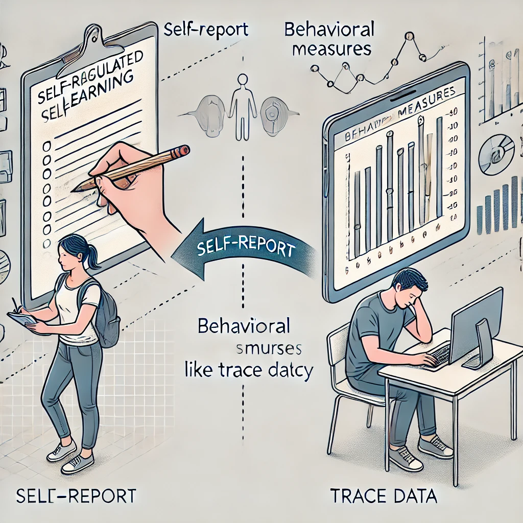 - Specific SRL strategies (fine granularity): However, when students are asked about specific learning strategies they used (e.g., highlighting, summarizing, taking notes), self-reports become unreliable. In such cases, behavioral measures (e.g., trace data, eye-tracking, or real-time observations) provide a more accurate account.