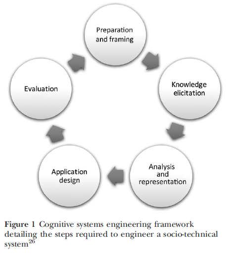 Figure 1 illustrates a common five-stage framework for engineering socio-technical systems. Although all stages are equally important, for the purposes of this paper we limited our scope to using the framework to study systems in HPE that are already implemented and ongoing. Thus, we moved past the initial ‘preparation and framing’ stage to focus on the ‘knowledge elicitation’ stage, in which engineers work to produce a robust description of system elements. Although there are many knowledge elicitation tools employed in cognitive systems engineering, we suggest that cognitive work analysis includes an ideal toolbox for analysing socio-technical systems.