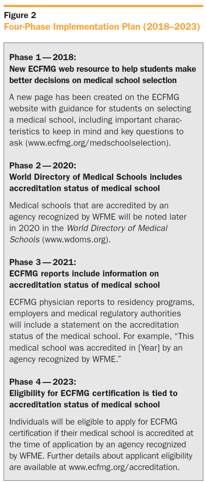 “By requiring the recognition of medical school accrediting agencies, in addition to medical school accreditation, ECFMG seeks to foster greater transparency and ongoing quality improvement in undergraduate medical education.”