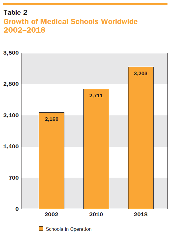 - 지난 20년간 전 세계 의과대학 수가 약 50%나 증가했고,