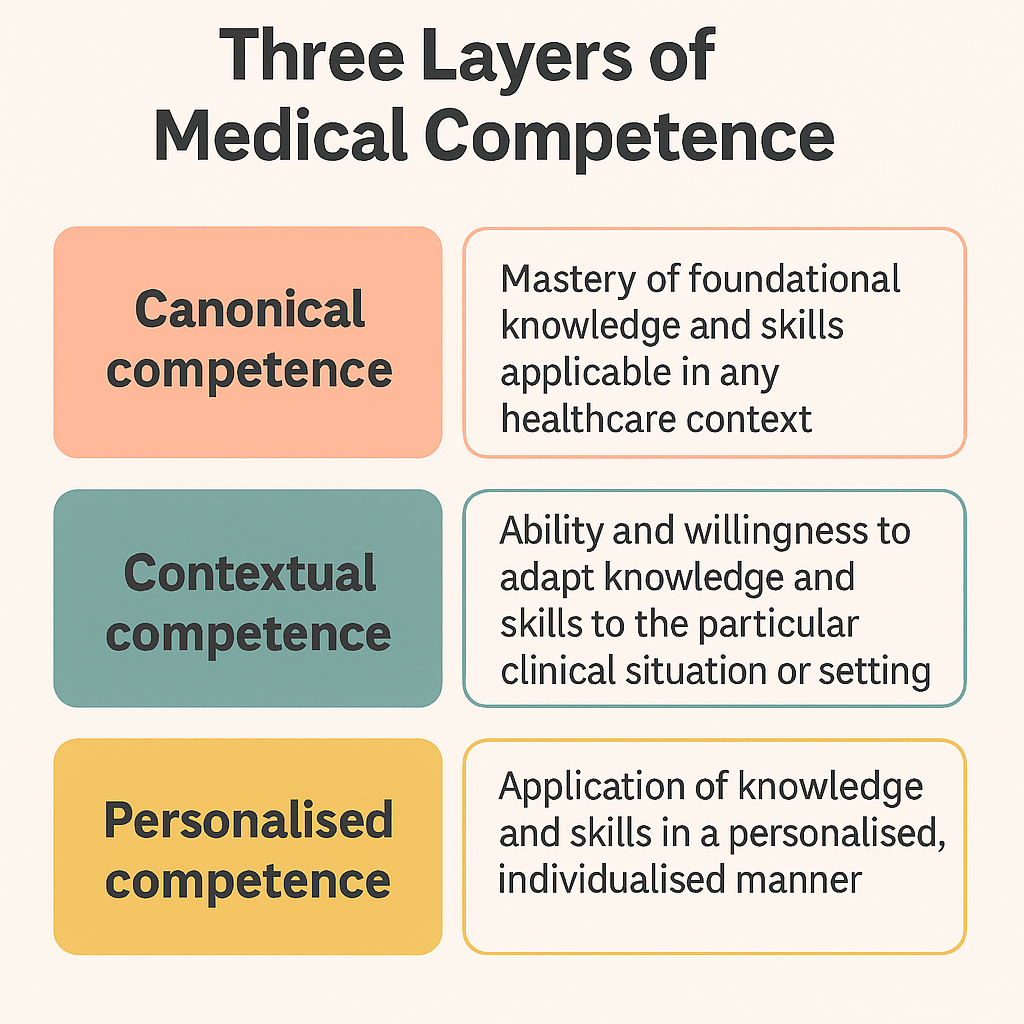 역량, 역량 요소(competencies), 그리고 역량 기반 교육에 대한 수많은 정의 시도들⁵–⁹은 **의료 역량의 전체적(holistic) 특성을 포착하지 못하고 지나치게 환원주의적(reductionist)**이라는 비판을 받아왔다¹⁰–¹⁵.