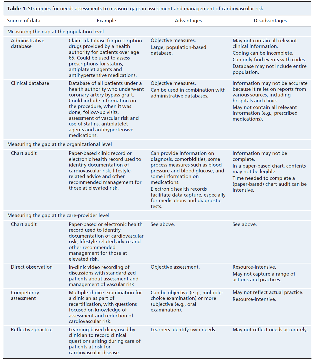 이러한 니즈는 인구 집단(population), 제공 기관(provider organization), 보건의료 제공자(health care provider)의 관점에서 검토할 수 있으며, 객관적(objective) 또는 주관적(subjective)으로 측정할 수 있습니다(Table 1 참조)¹⁹.