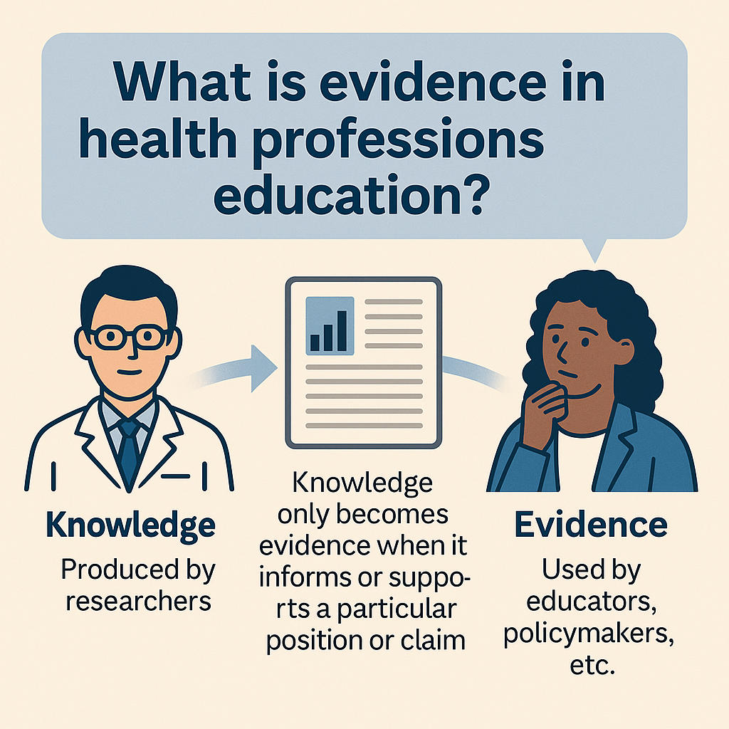 “Health professions educators should be asking, ‘How does knowledge activated as evidence add to or change conversations in HPE?’ and ‘How do HPE institutions shape knowledge production and its use as evidence, and for what purpose?’”
