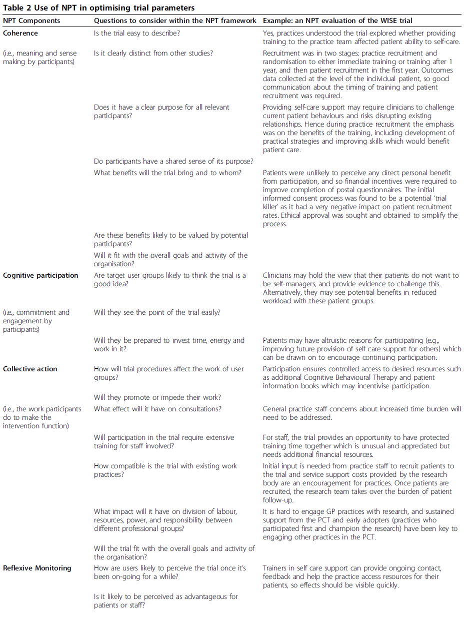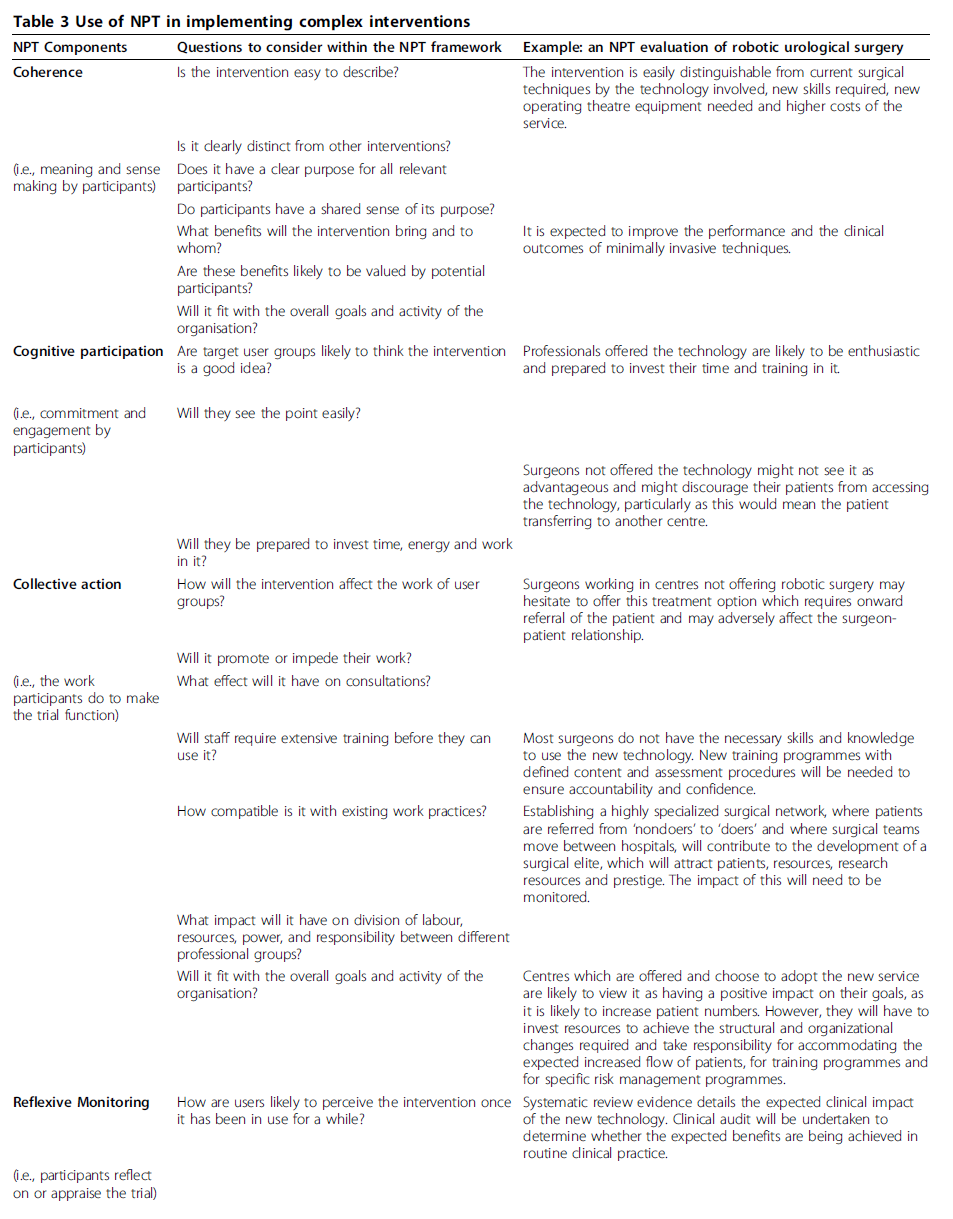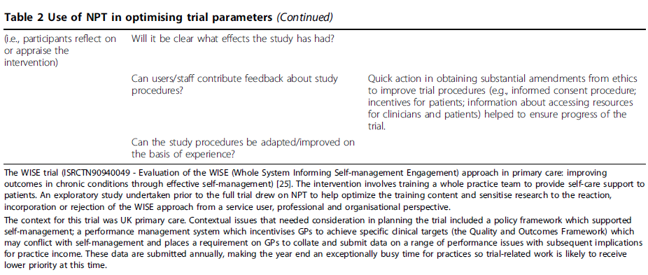 (Table 1 Use of NPT in developing complex interventions)