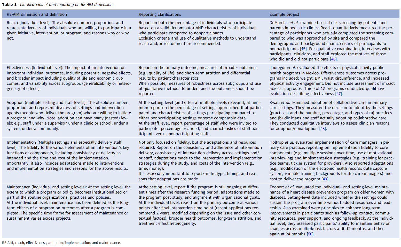 (RE-AIM: Reach, Effectiveness, Adoption, Implementation, Maintenance)