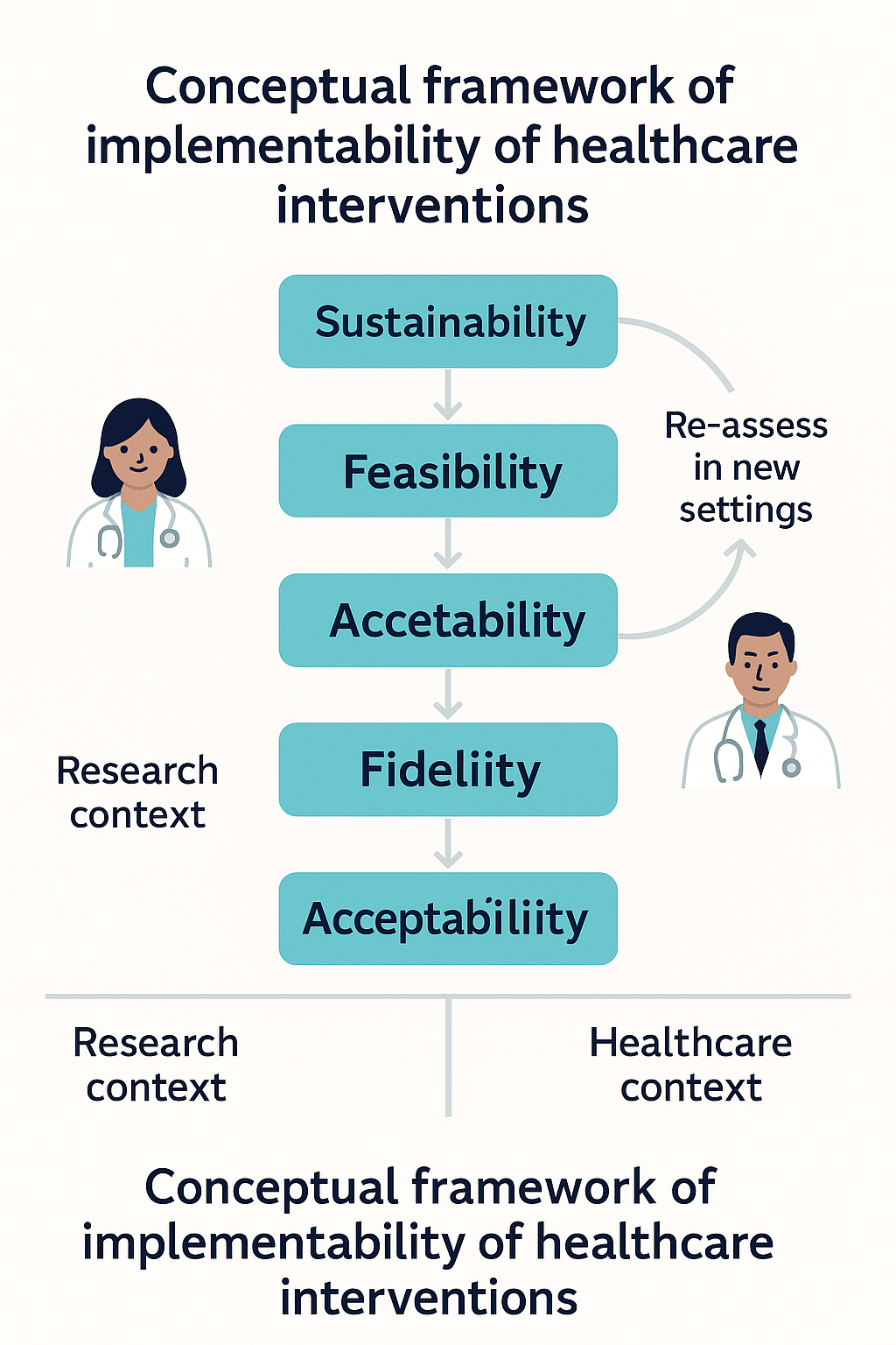 “We propose a framework of implementability of healthcare interventions which includes five key concepts, namely, acceptability, fidelity, feasibility, scalability and sustainability.”