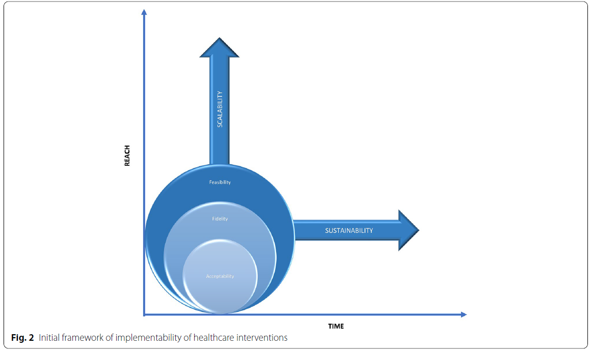 → “우리는 수용성, 충실도, 실현 가능성, 확장 가능성, 지속 가능성의 5가지 핵심 개념을 포함하는 보건의료 중재의 이행 가능성 프레임워크를 제안한다.”
