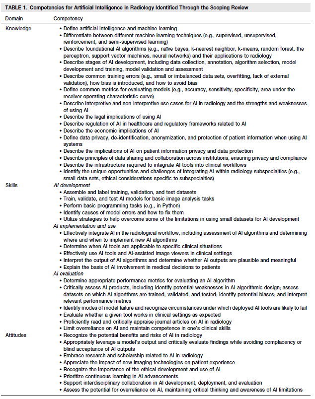 Educational Competencies for Artificial Intelligence in Radiology: A Scoping Review