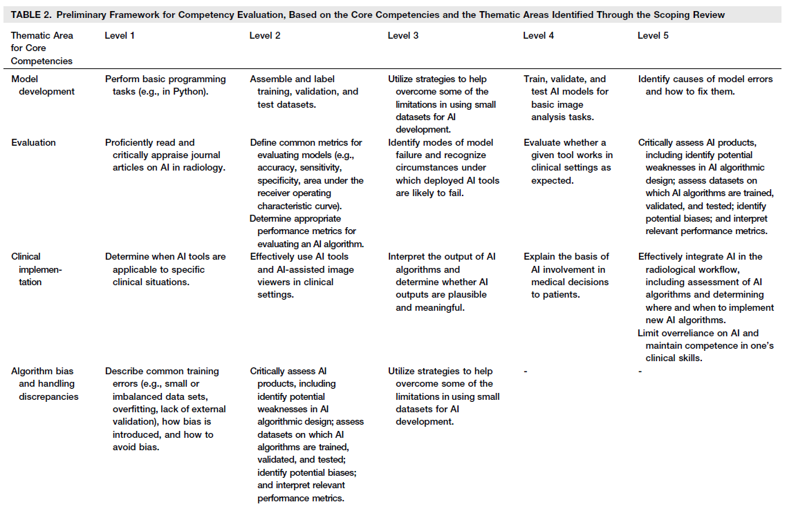 "Radiology has been one of the disciplines at the forefront of AI implementation in healthcare, making radiology an ideal discipline to begin to define core competencies surrounding AI for specialty medicine residency programs."