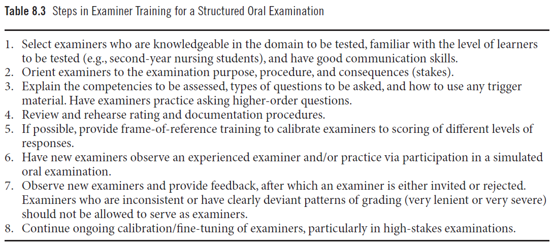 Table 8.3 구조화된 구술시험(Structured Oral Examination)을 위한 평가자 훈련 단계 (Steps in Examiner Training for a Structured Oral Examination)