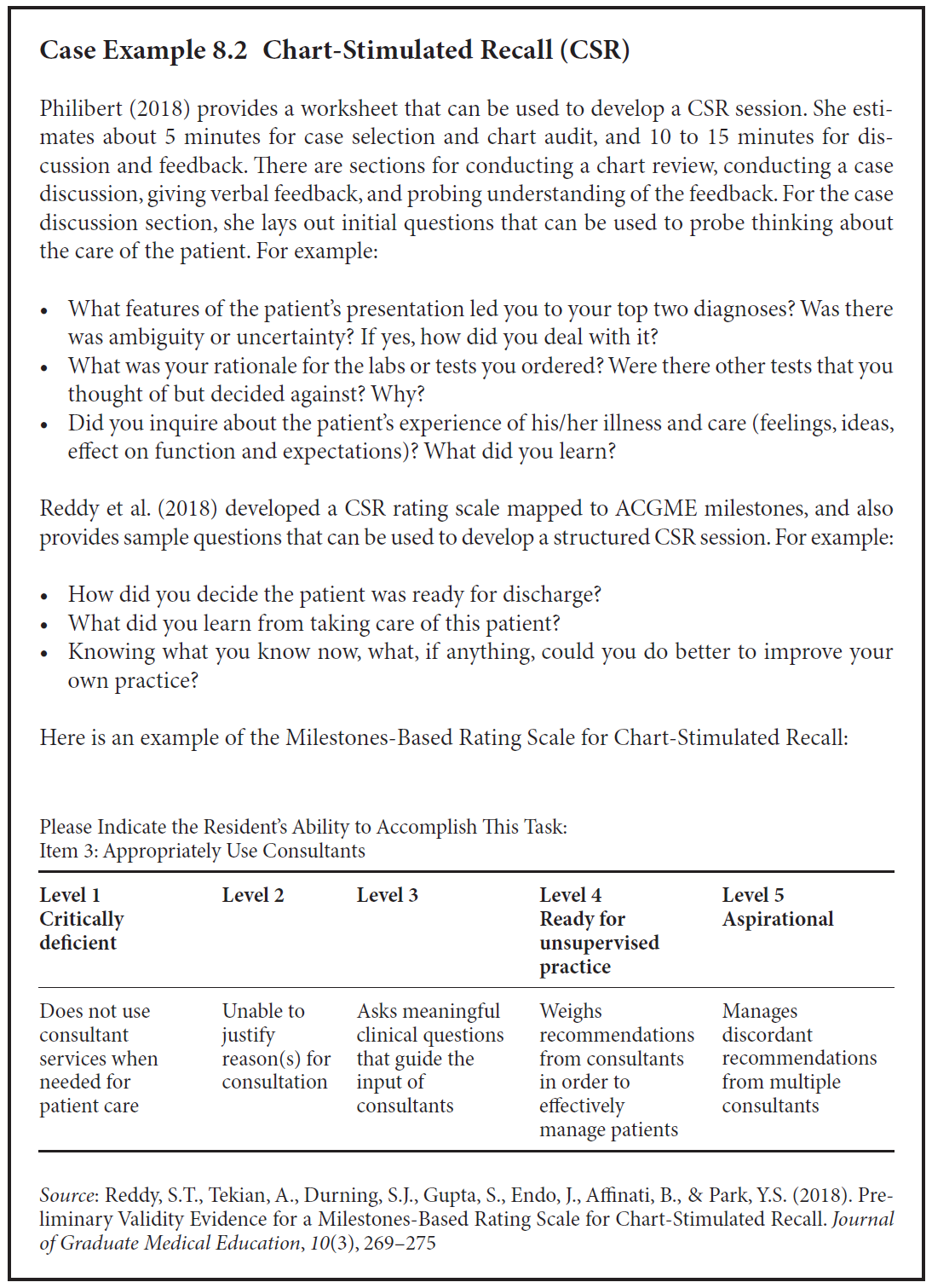 - CSR은 훈련생(trainees)뿐만 아니라 현직 의사(practicing physicians)의 평가와 피드백 제공에도 활용되어 왔다 (Al-Wassia et al., 2015; Goulet et al., 2007; Reddy et al., 2015).