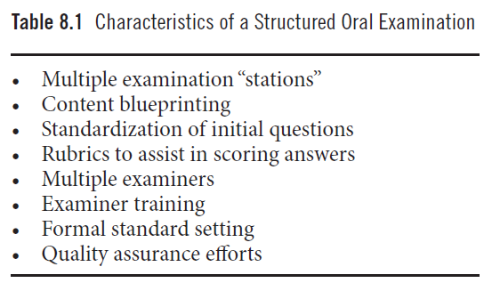 Table 8.1 구조화된 구술시험의 주요 특징 (Characteristics of a Structured Oral Examination)