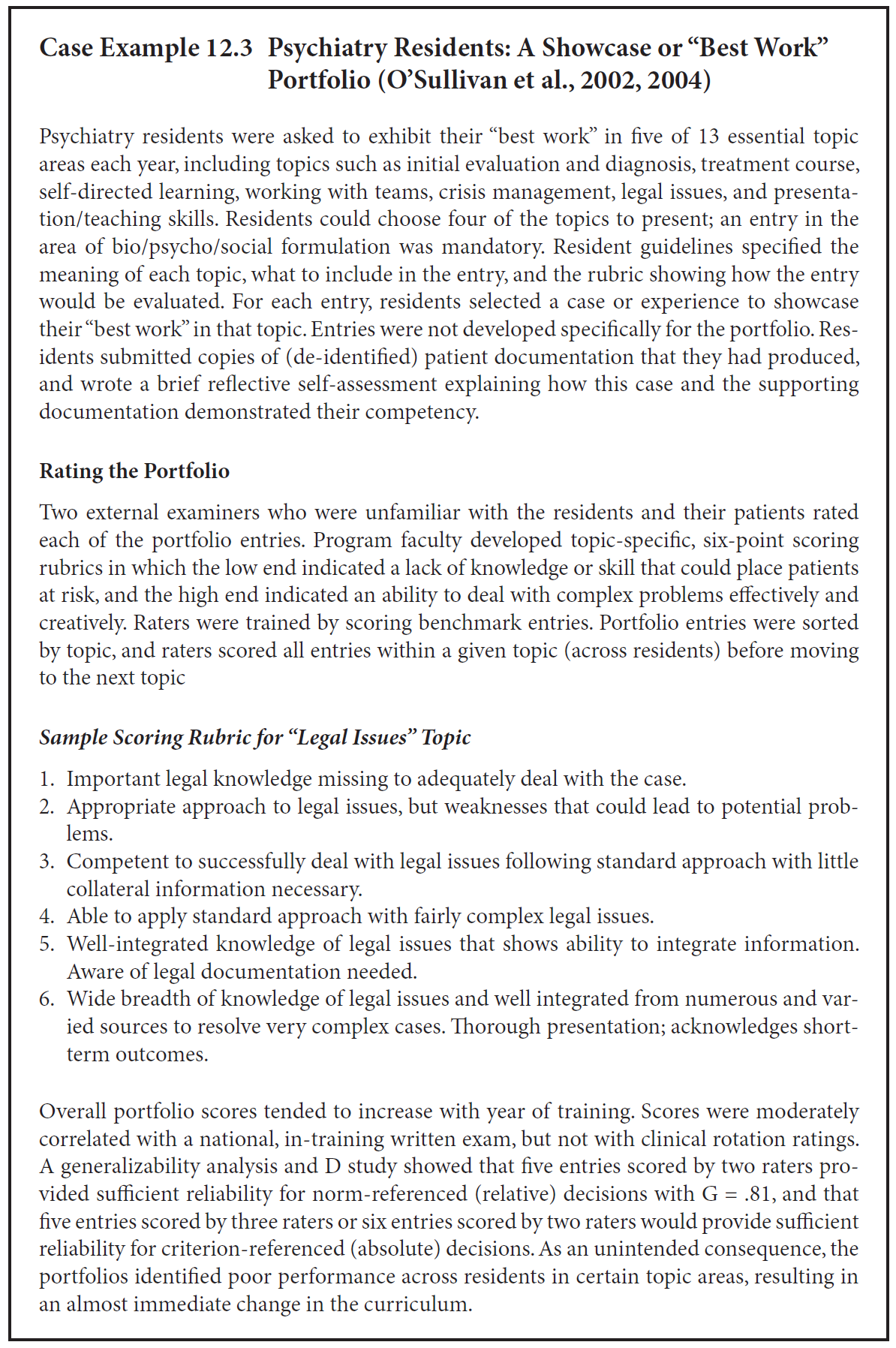 - 또한 포트폴리오 평가자(portfolio raters) 역시 구술시험(oral exam)이나 수행평가(performance exam) 평가자와 마찬가지로 편향(bias)과 오류(error)에 노출될 수 있다 (Table 12.2 및 Chapters 8, 9 참고; Ward et al., 2002; Roberts et al., 2002).