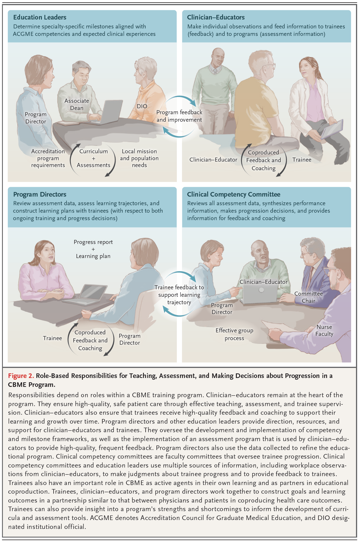 그림 2 CBME 프로그램에서 교수, 평가 및 발달 결정에 대한 역할 기반 책임.