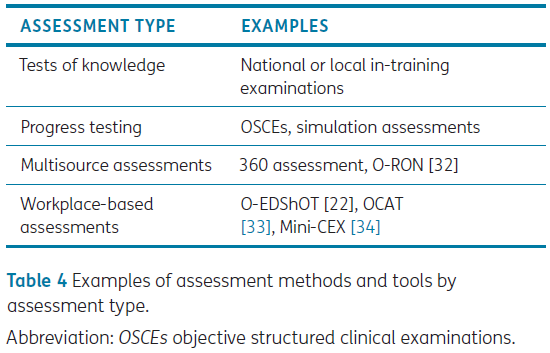 | 지식 시험 (Tests of knowledge) | 국가 또는 지역 수련 중 시험 (in-training examinations) |