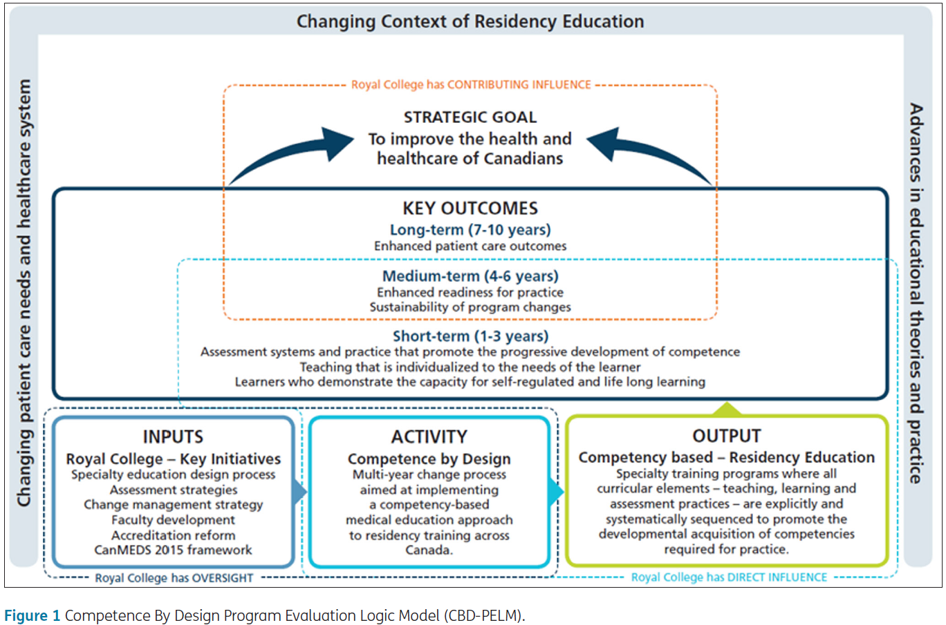 이 로직 모델을 바탕으로(On the basis of), Royal College는 전반적인 "작동 이론(theory of action)", 즉 CBD 프로그램 모델이 어떻게 원하는 변화를 가져오도록 의도되었는지(how... was intended to bring about the desired change)를 명시적으로 진술했습니다 [22]:
