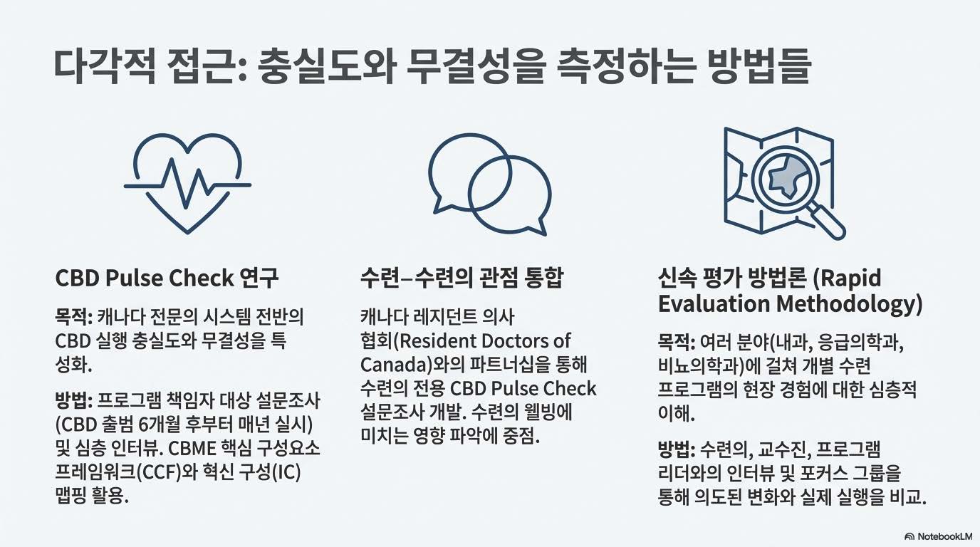 하지만 연구진은 꽤 충격적인(혹은 우리 모두 공감할만한) 현상을 발견했습니다. 바로 "Bolt-on(억지로 덧붙이기)" 현상입니다. 기존 교육과정은 그대로 둔 채, CBD가 요구하는 평가 절차만 억지로 끼워 넣은 곳들이 많았다는 거죠.