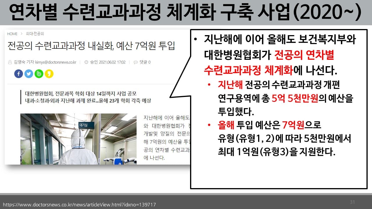 | 전공의 수련교과과정 체계화 사업 (0) | 2022.01.02 |